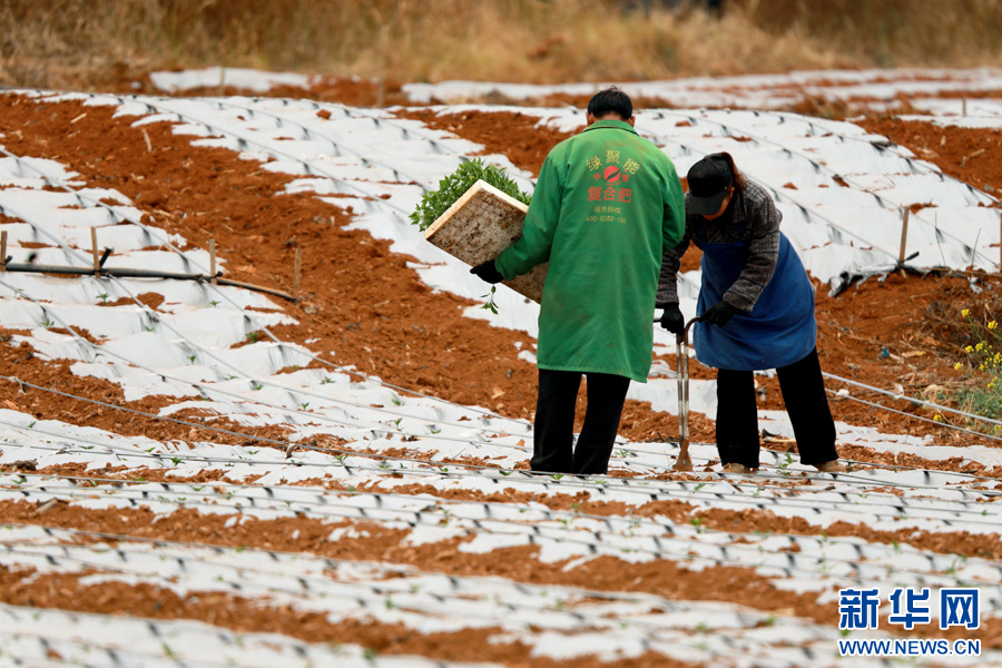 农户进行辣椒移栽种植(2月23日摄)。新华网发(马卫忠 摄)