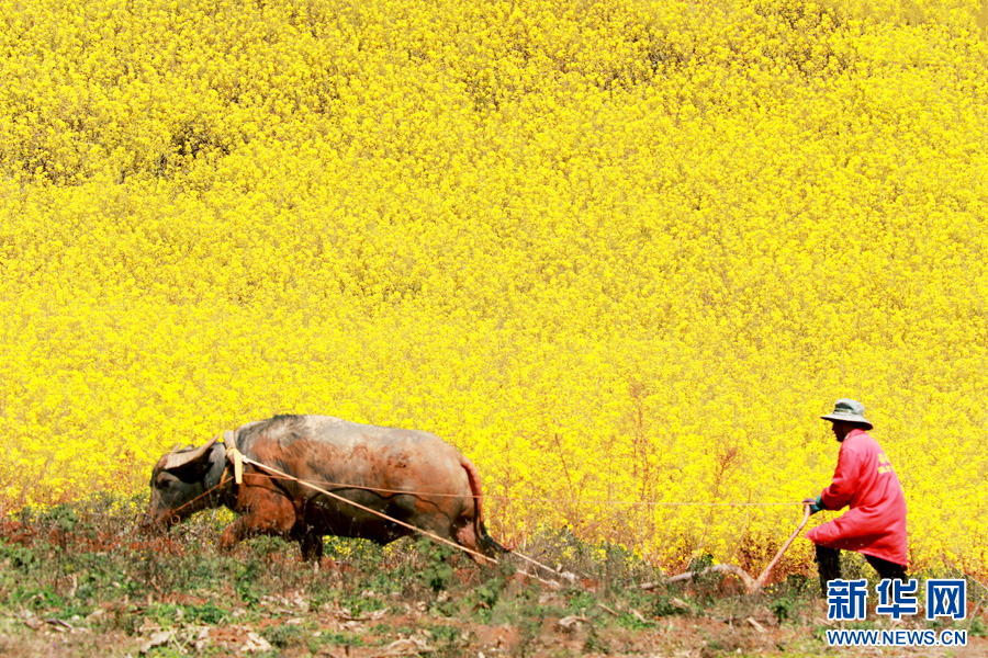 近日,在云南省丘北县八道哨乡,金黄的油菜花随风摇曳,农户正抢抓时令,积极开展春耕备耕,绽放的油菜花与耕种的农户们共同绘就了一幅美丽的春耕画卷。(完)(马卫忠)