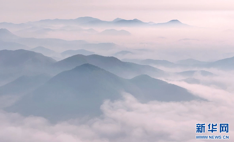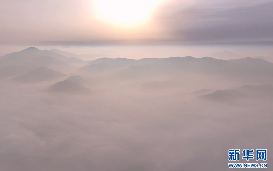 近日,安徽省芜湖市繁昌区孙村镇出现壮美云海景观。群山隐现,云海翻涌如潮,晨曦映照下,云浪时而轻纱漫卷,时而怒涛拍岸,宛如一幅天然水墨画卷。(鲁君元 摄)