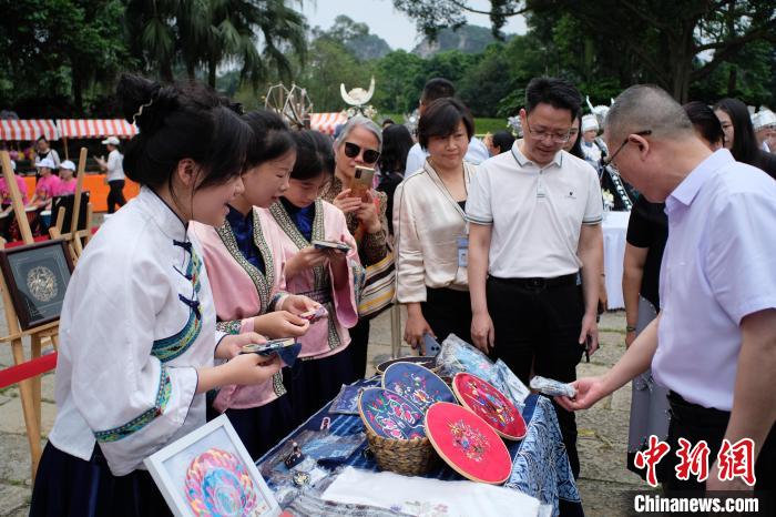 4月25日,在广西柳州市龙潭公园内,一场热闹的非遗创意集市正在进行。现场共展示侗族大歌、刺绣、植物拓染、陶笛等特色非遗项目,吸引大批民众围观。作为中国多民族聚居地,广西拥有丰富的非遗“瑰宝”,并长期传承下来。