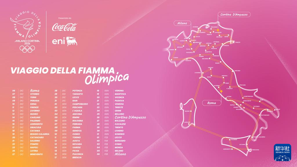 新华社罗马11月26日电(记者刁泽)米兰冬奥会组委会26日公布2026年米兰-科尔蒂纳丹佩佐冬奥会和冬残奥会火炬接力计划。