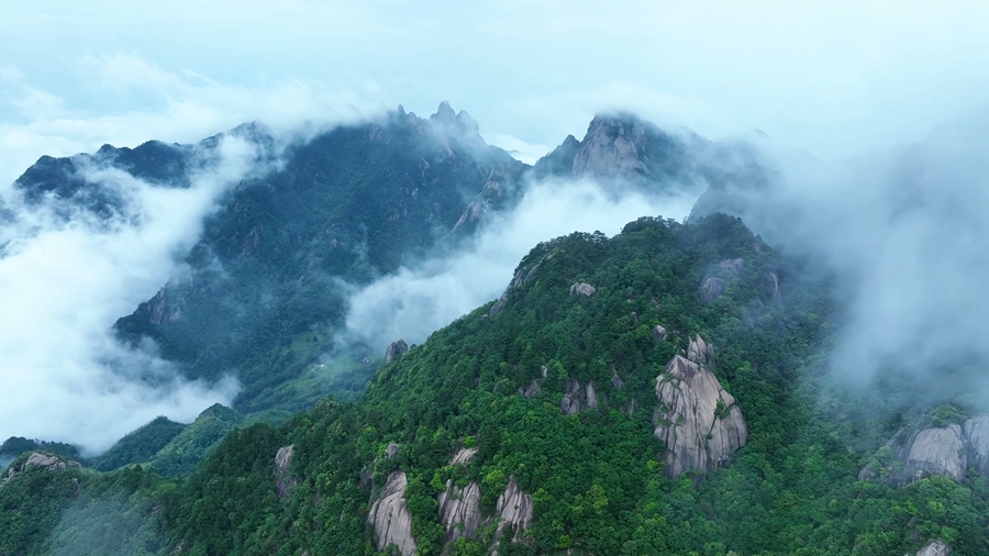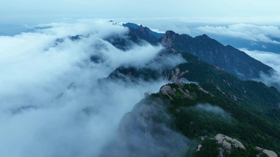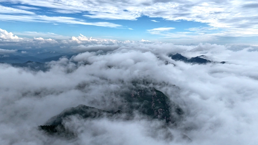 近日,安徽池州九华山风景区迎来壮美云海。云海在层峦叠嶂间流转徘徊,群峰若隐若现,勾勒出“峰为云所托,云为峰所依”的绝妙意境。