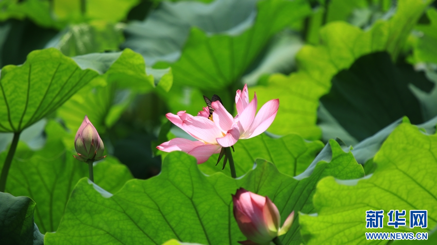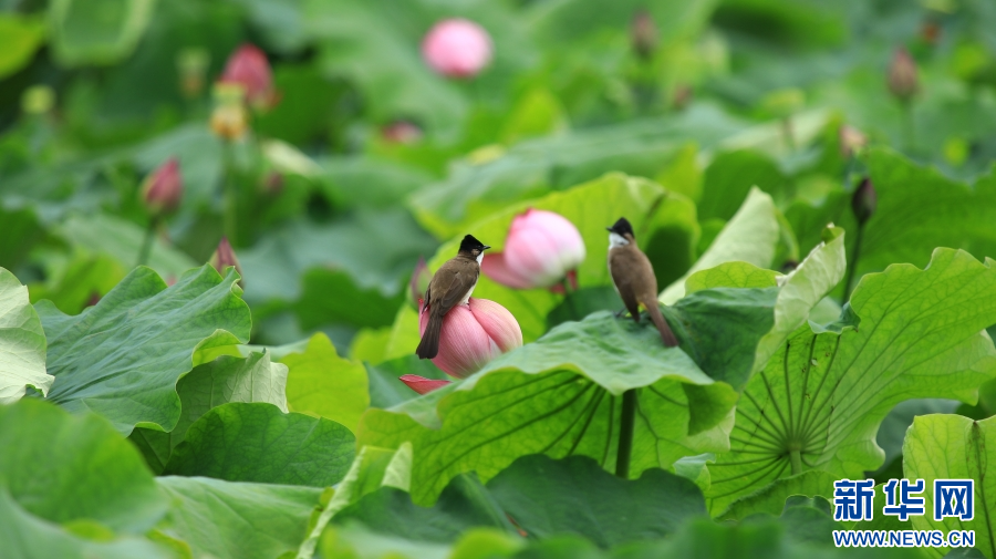 夏日里,云南省腾冲市和顺镇大庄村的荷塘中,荷叶翠绿,荷花绽放,亭亭玉立,清香四溢。鸟儿、蜻蜓、胡蜂在其间穿梭,偶尔停留,仿佛也因这美景所陶醉,不忍离去,与荷塘共同演绎着自然和谐的乐章。新华网发(赵辉 摄)
