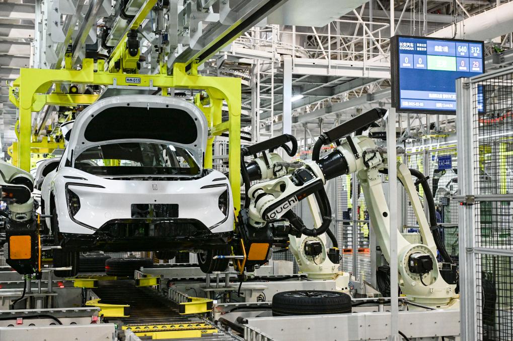 重庆长安汽车数智工厂总装车间自动化生产作业现场。新华社记者王全超 摄