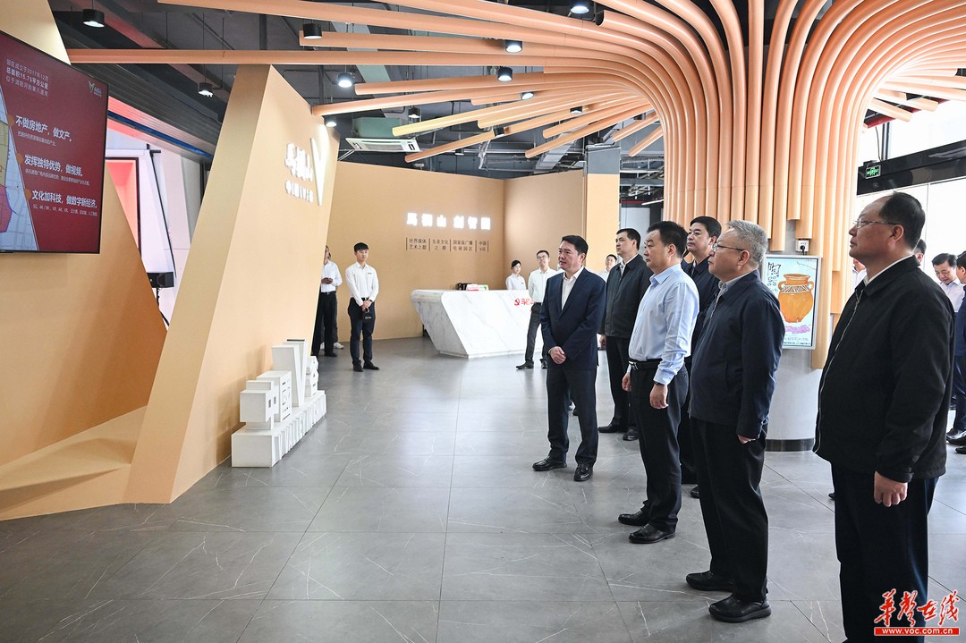(5月12日,西藏自治区党政代表团考察了马栏山视频文创产业园。)