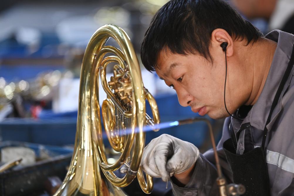 “咱们这儿生产的管乐器,在世界上已颇具认可度。就拿工人们手头正在精心制作的这批圆号来说,很快它们就会远渡重洋到客户手中。”公司副总经理张雯说。