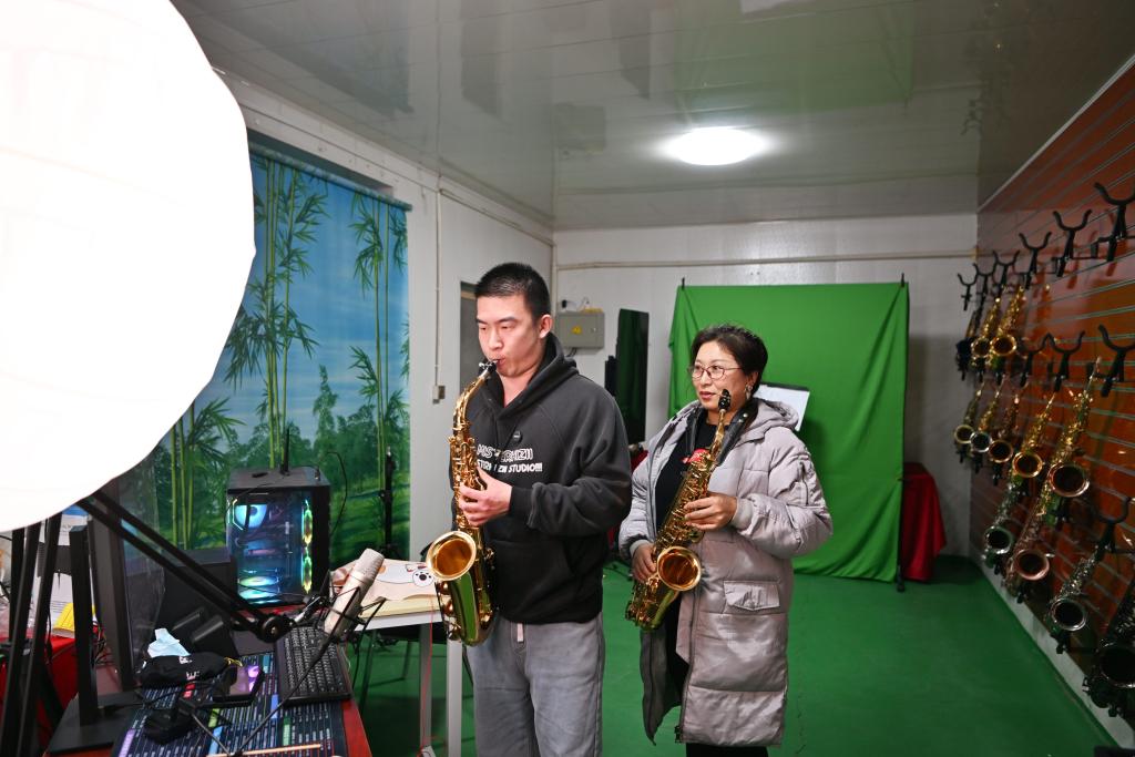 蔡公庄镇已成为国内管乐器直播销售的重要基地。新华社记者 李然 摄