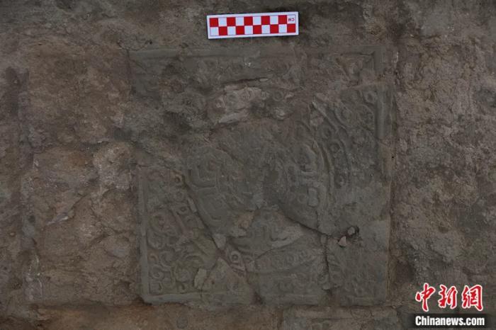 北庭故城内城北门发现的莲花纹地砖。新疆维吾尔自治区文物考古研究所供图