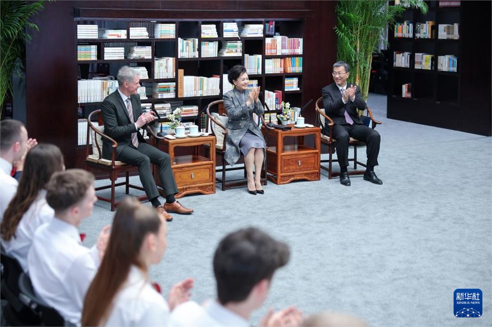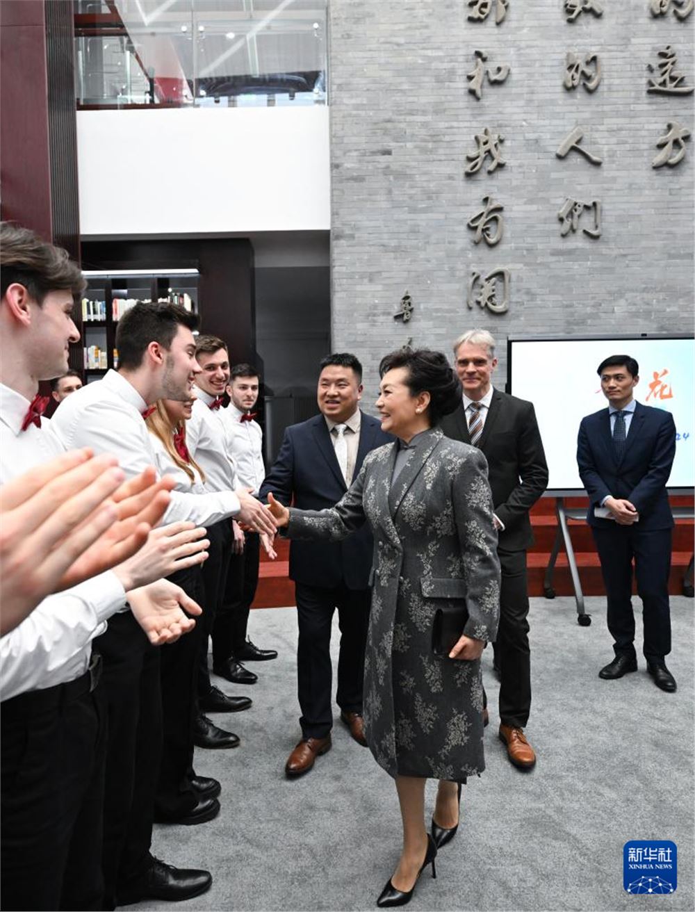 3月28日下午,国家主席习近平夫人彭丽媛在北京市第三十五中学会见来华参访的德国伯乐中文合唱团师生代表。