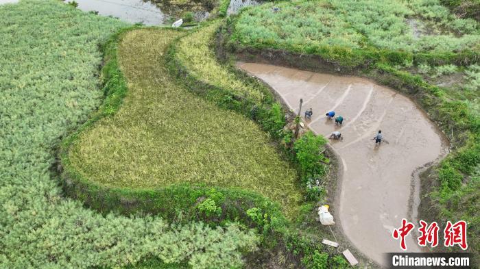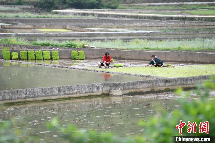 连日来,随着气温升高、雨量增多,贵州省黔东南苗族侗族自治州黄平县野洞河镇的田间地头热闹非凡,当地农民抢抓农时进行耙田、栽插稻谷秧苗等农事,田间地头呈现出一幅生机勃勃的乡村春耕图景。