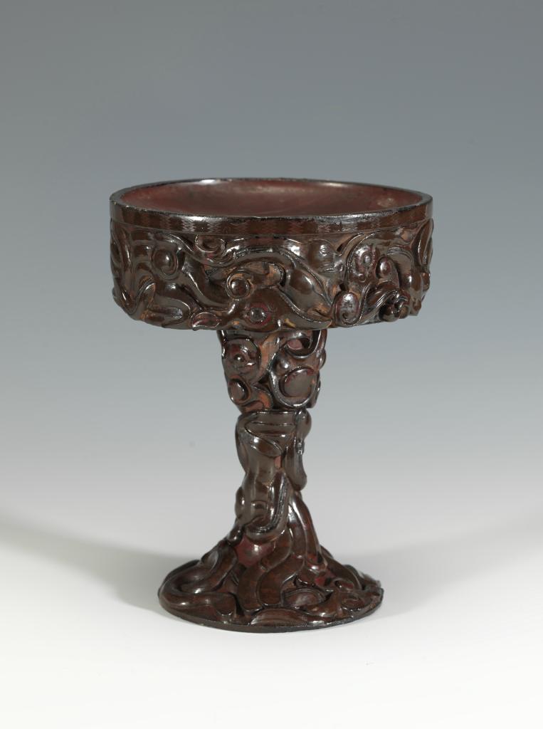 图为展出的战国浮雕彩绘龙凤纹漆豆。(南昌汉代海昏侯国遗址博物馆供图)