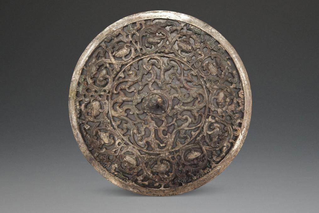 图为首次展出的海昏侯内棺出土的青铜镜。(南昌汉代海昏侯国遗址博物馆供图)