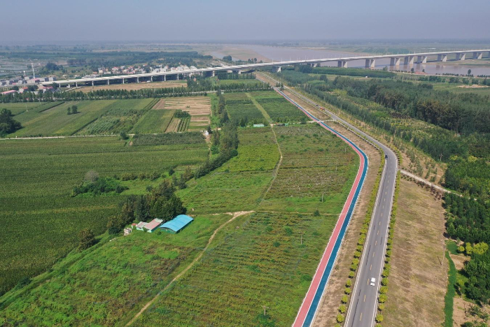 图为河南中牟沿黄生态廊道“林水共生”重塑沿岸生态。(中牟县委宣传部供图)