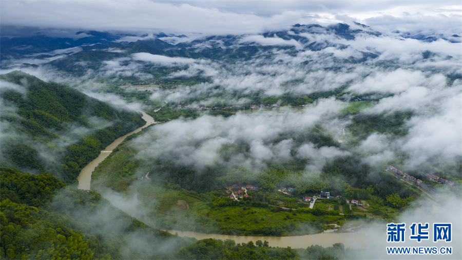 6月9日,航拍安徽宣城境内的“皖南川藏线”宁国青龙乡储家滩。