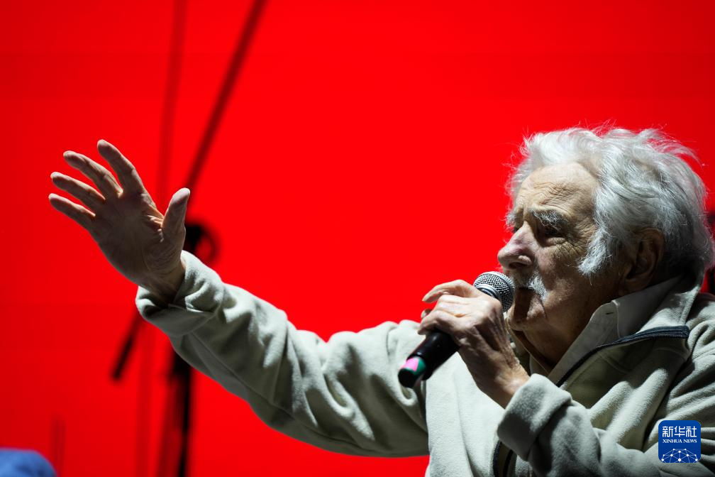 这是何塞·穆希卡在乌拉圭蒙得维的亚发表演讲的资料照片(2024年10月19日摄)。新华社发(尼古拉斯·塞拉亚摄)