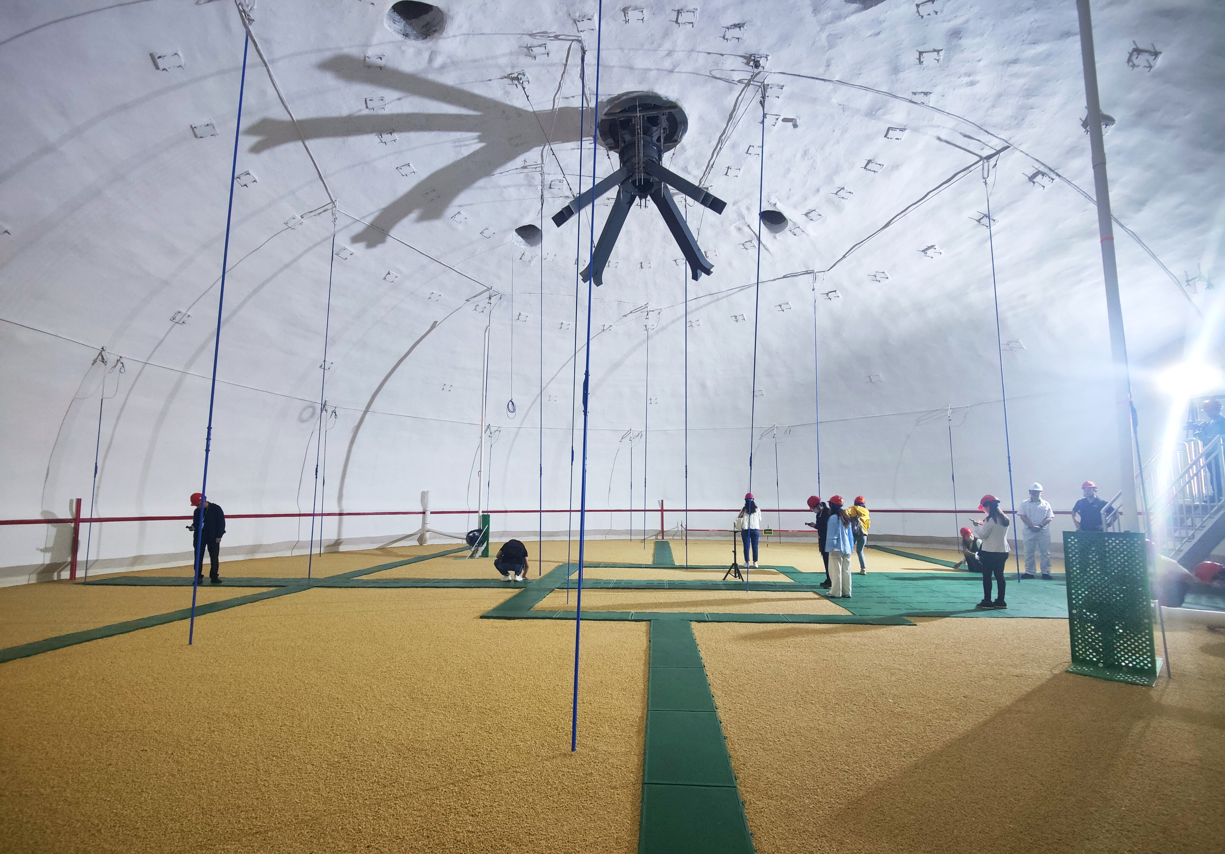 10月16日,记者走进中储粮新津直属库粮食气膜仓内部。新华网 李然 摄