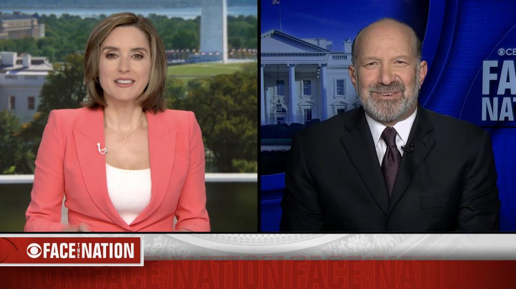 7月20日美国商务部长卢特尼克(右)接受哥伦比亚广播公司节目采访的视频截图