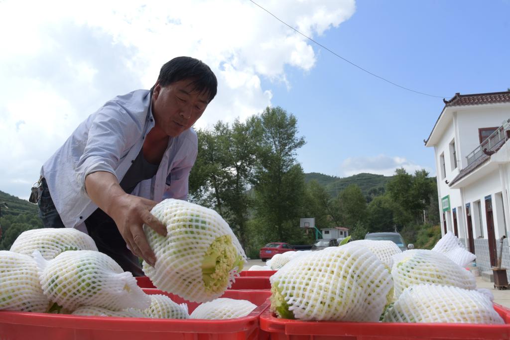 在上庄村新设立的蔬菜快速收购点,蔬菜收购商们正忙着收购村民们采摘来的高原夏菜。过磅、装箱,带着晨露的鲜嫩蔬菜被运往附近的冷库,等待发往长三角、珠三角地区的“菜篮子”。