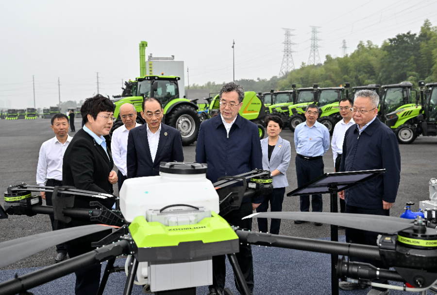 9月23日,中共中央政治局常委、国务院副总理丁薛祥在湖南调研。这是丁薛祥在中联重科股份有限公司调研。新华社记者 殷博古 摄