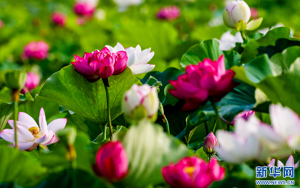 近年来,杜集区在治理采煤沉陷区的同时,大力发展荷花产业,丰富荷花产品供给,推进田园景观、休闲、民宿、自然生态与荷花文化的深度融合,助力乡村美、生态优、产业兴、百姓富。新华网发(王文 摄)