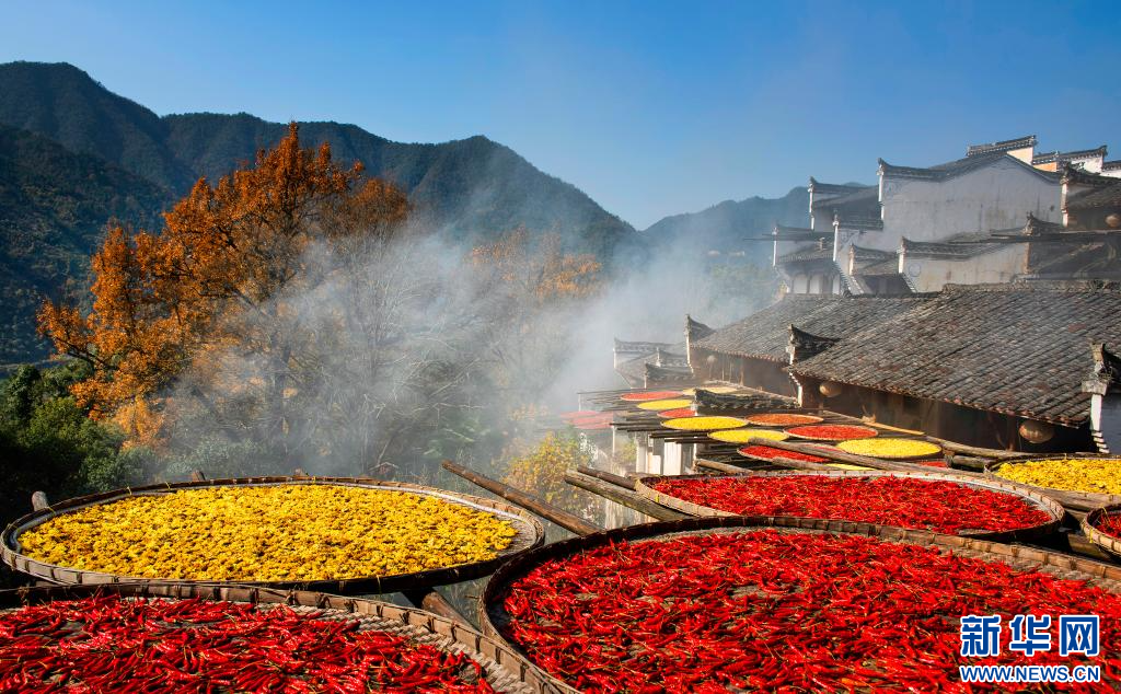 婺源篁岭景观。新华网发小雪之后,北方早已天寒地冻,而在南方的江西婺源篁岭村却迎来了颜值高光时刻,漫山红叶与晒秋盛景交织,绘就出一幅绝美的“秋日”画卷。由于得天独厚的地理环境与气候条件,篁岭村有着“最长的秋天”。晒秋、柿子、银杏、黄菊、红枫……在这里,游客可以尽情领略最美秋韵,其魅力可持续至12月中旬。