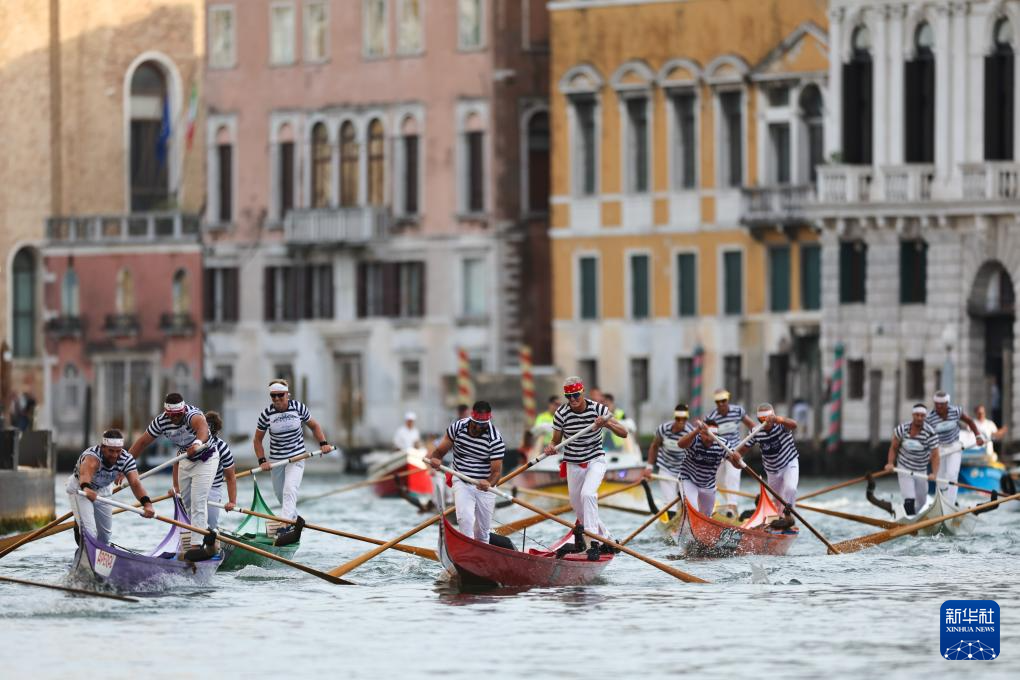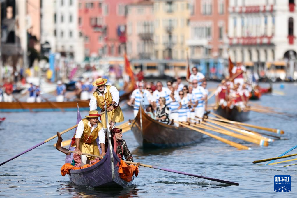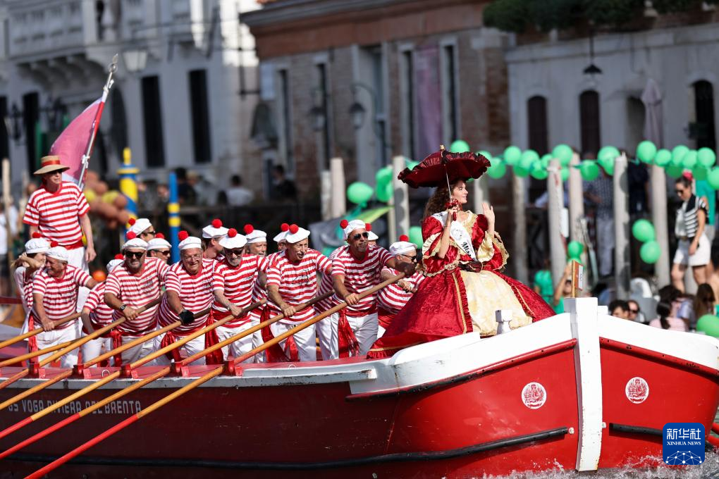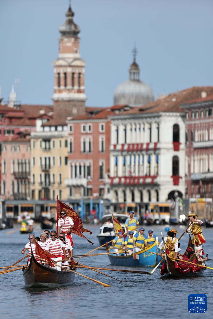 9月7日,在意大利威尼斯,人们参加赛船节。