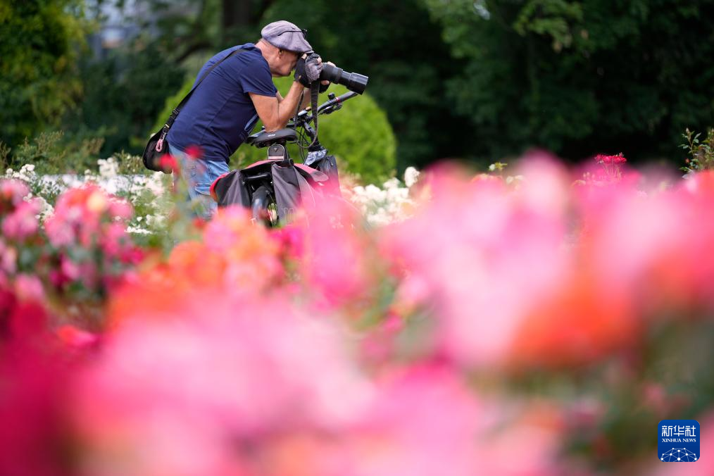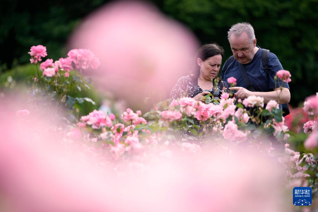 6月30日,在波兰首都华沙,游客在斯卡雷谢夫斯基公园内拍摄盛开的鲜花。