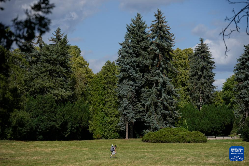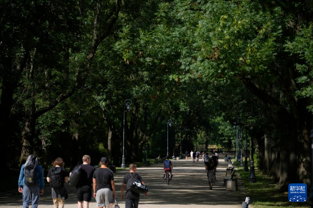 6月30日,在波兰首都华沙,游客在斯卡雷谢夫斯基公园内漫步。