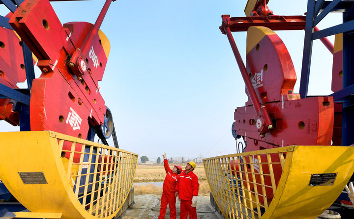 2021年12月9日,江汉油田员工在碳酸盐岩开发区块巡检油井生产运行情况。(新华社发 宋国梁摄)