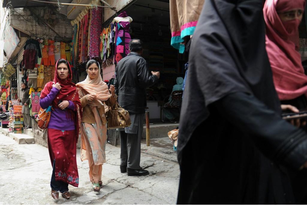 2014年3月16日,在巴控克什米尔地区首府穆扎法拉巴德,两名妇女在街道穿行。新华社记者黄宗治摄为防止印度“为所欲为”,乔杜里呼吁沙特阿拉伯、卡塔尔、阿拉伯联合酋长国等“友好国家”以及美国、英国等“大国”参与巴印局势斡旋。眼下,巴控克什米尔地区政府正与红新月会等组织准备医疗用品、食品等物资,以防局势升级。
