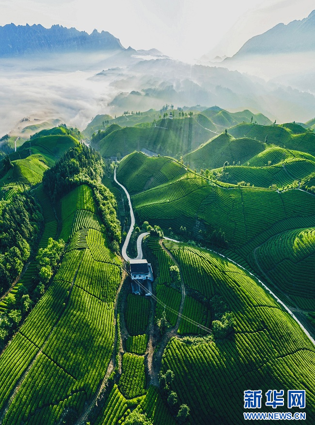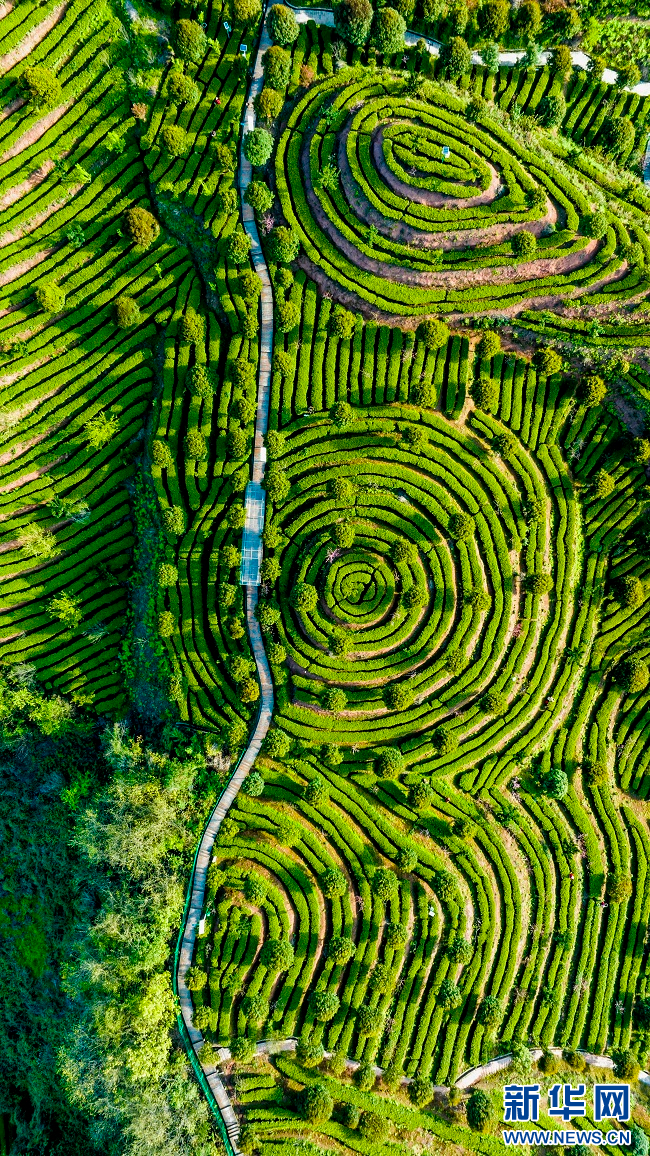 图为恩施州鹤峰县走马镇杨柳池茶园成生态风景线。新华网发 文林摄