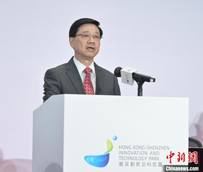 4月18日,香港举行港深创科园合作伙伴启动礼。图为香港特区行政长官李家超致辞。(资料图)特区政府新闻处供图