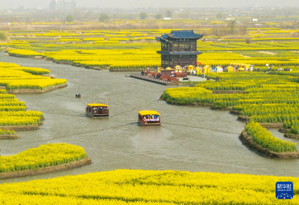 随着气温回升,江苏省兴化市千垛景区的油菜花陆续开放。金黄色的油菜花与纵横交错的河道交相辉映,构成“河有万湾多碧水,田无一垛不黄花”的春日画卷,吸引了不少游客前来赏花,尽享美好春光。