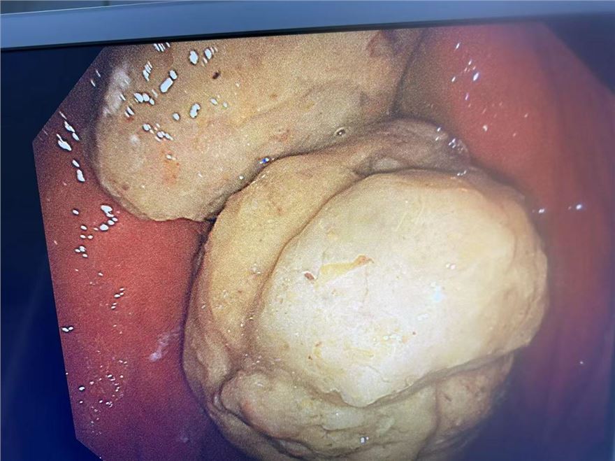 10月29日凌晨,家住长沙雨花区的陈女士(化名)腹部剧烈疼痛,在家人陪同下到长沙市中心医院就诊,经过仔细检查,竟然在其胃部及结肠发现了两个直径约5cm、乒乓球大小的结石。