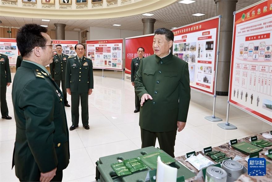 4月23日,中共中央总书记、国家主席、中央军委主席习近平到陆军军医大学视察。这是习近平亲切接见陆军军医大学官兵代表。