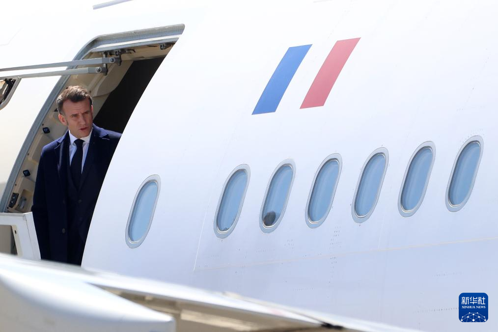 3月9日,法国总统马克龙抵达塞浦路斯西南部的帕潘德里欧空军基地。新华社发(乔治·克里斯托弗鲁摄)