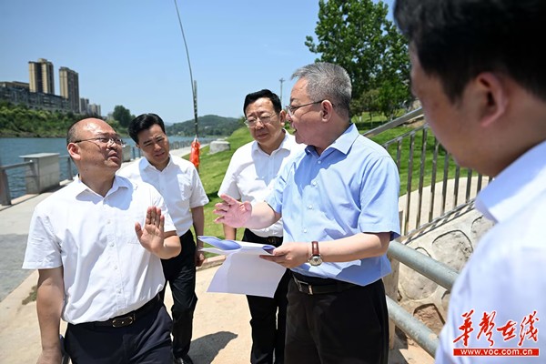 (5月28日,沈晓明在㵲水河茅谷冲溪段了解截污纳管等整改措施的实施进度。)