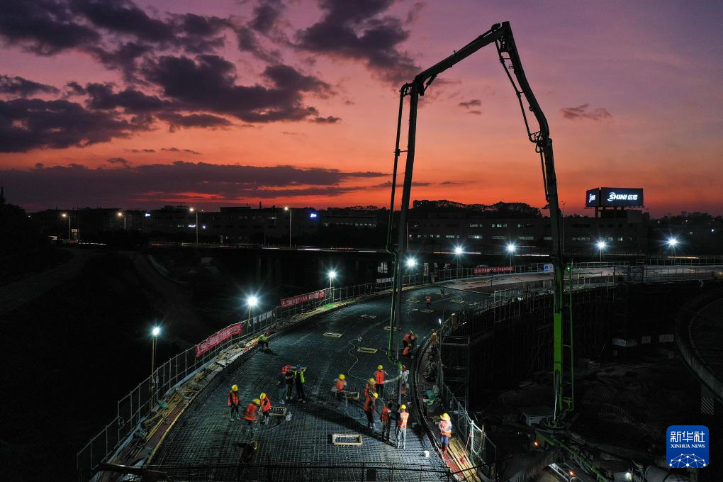 在粤港澳大湾区交通基础设施建设现场,中铁十一局项目团队利用夜间适宜温度进行大型混凝土箱梁浇筑,确保工程质量。建设者们披星戴月,展现大湾区发展活力。