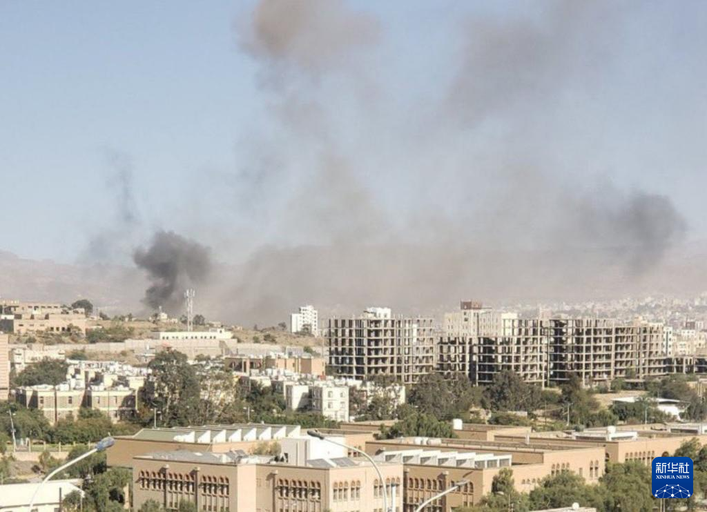 2024年12月31日,也门萨那市中心一处军事基地遭到空袭后冒出浓烟(手机照片)。新华社发