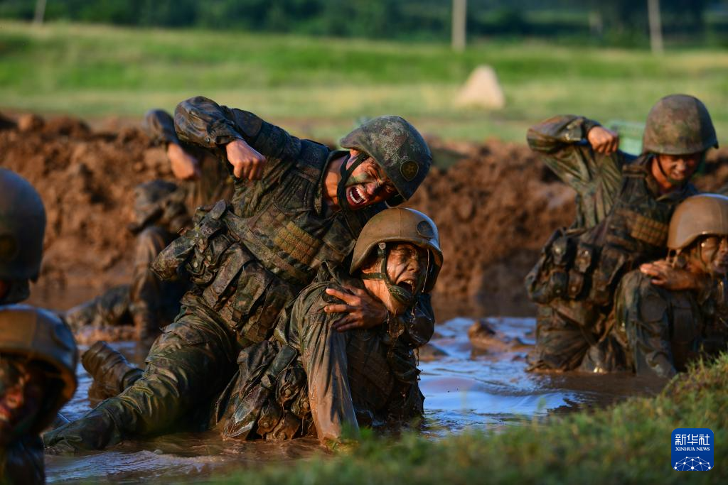 陆军某合成旅“杨根思连”官兵利用训练间隙开展小比武、小竞赛活动(2023年5月26日摄)。新华社发(季鹏 摄)