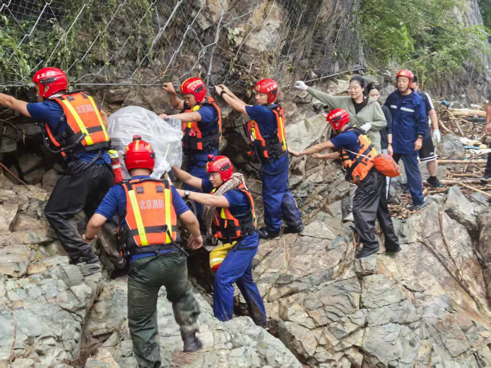时间拨回到7月26日深夜,海淀消防增援怀柔二分队出发前往怀柔区琉璃庙镇及周边村庄,海淀消防永丰消防救援站副站长蒋寒阳也在其中。27日下午,他和队友历经艰险到达鱼水洞村,转移30多名被困群众。