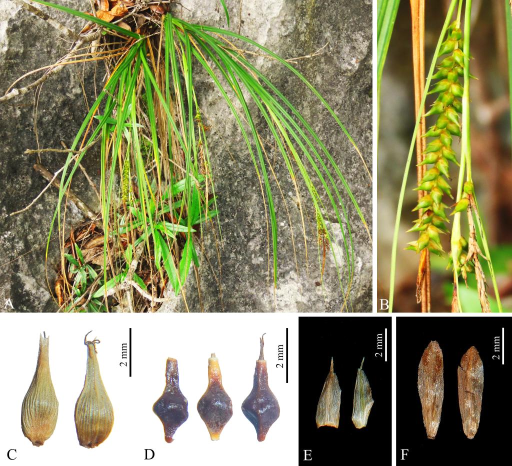 据了解,技术团队在都安瑶族自治县地苏地下河国家地质公园内开展植物专项调查时,发现一种正处于果期的薹草属植物。经解剖观察以及查阅相关文献资料和标本,确认该物种是从未被描述和报道过的新物种,研究人员以其发现地将其命名为都安薹草。这一研究成果近日发表在国际植物分类学期刊PhytoKeys上。