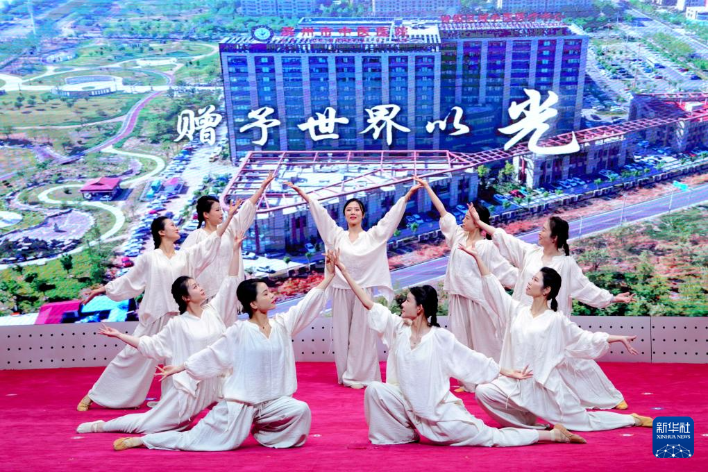 5月9日,山东省滨州市中医医院的护士在活动中表演情景舞剧。新华社发(初宝瑞摄)