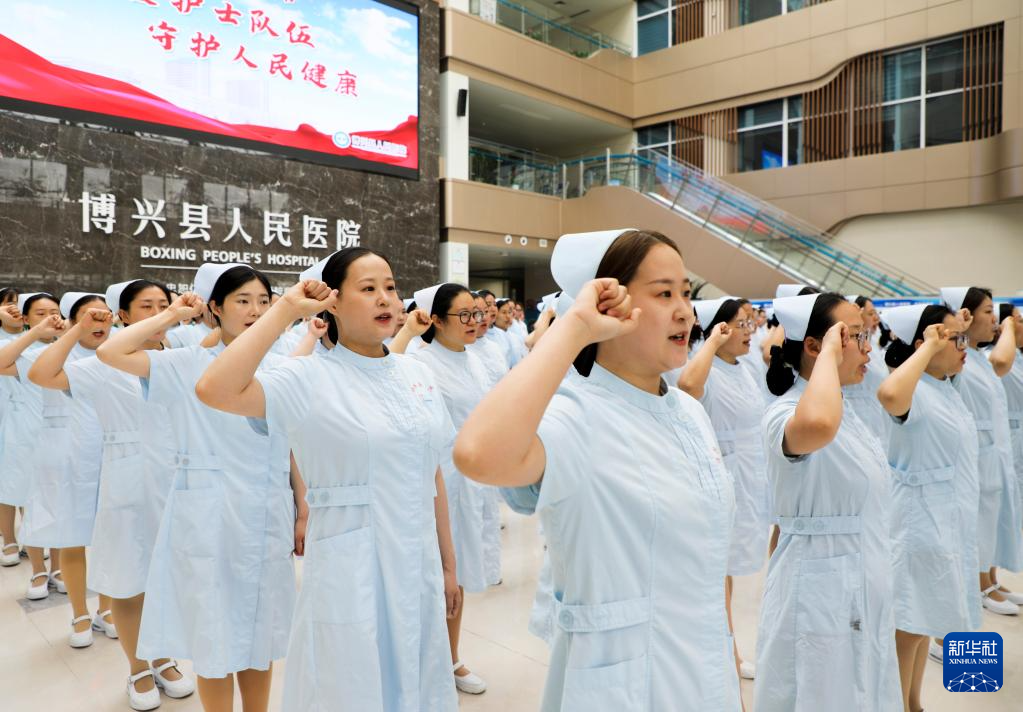 5月9日,山东省博兴县人民医院护士参加集体宣誓活动。新华社发(陈彬摄)