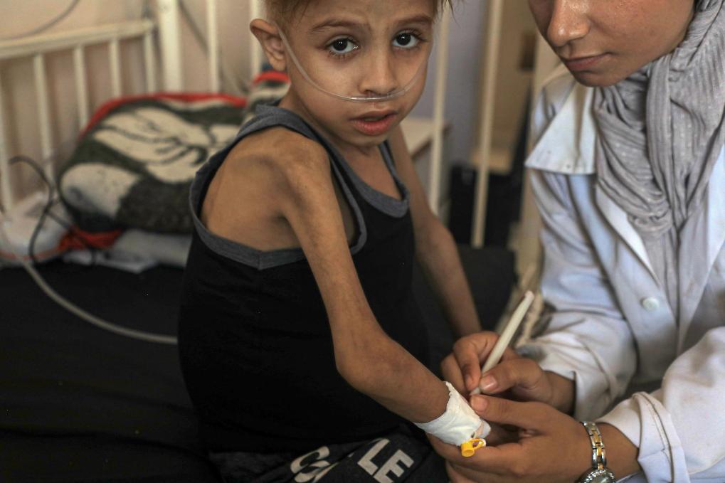 8月19日,患病儿童在加沙地带南部城市汗尤尼斯的纳赛尔医院接受治疗。新华社发(里泽克·阿卜杜勒贾瓦德摄)