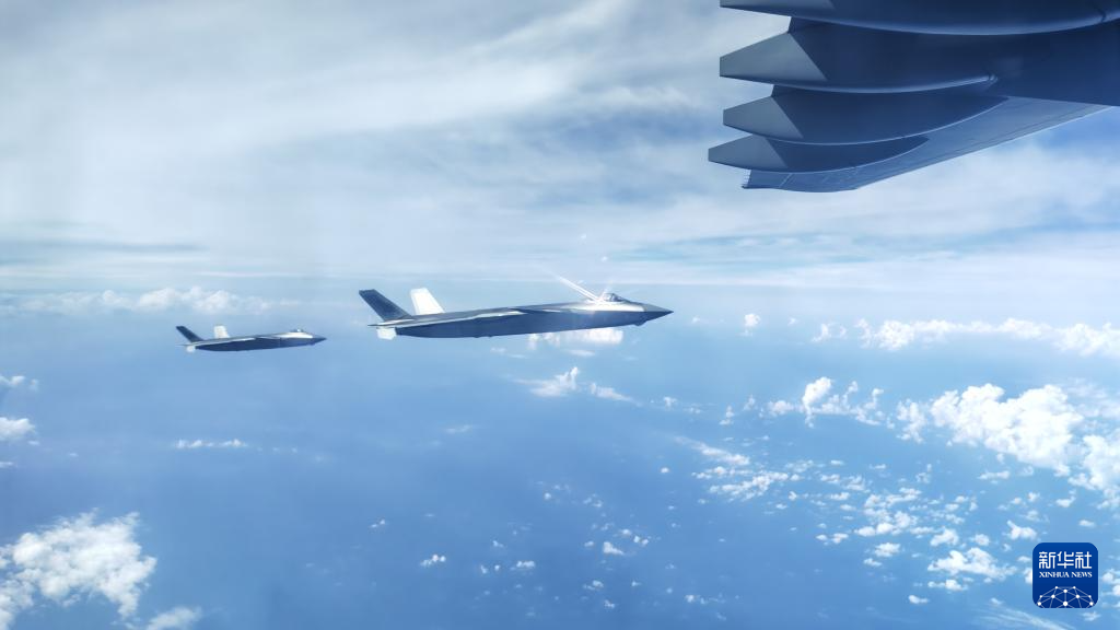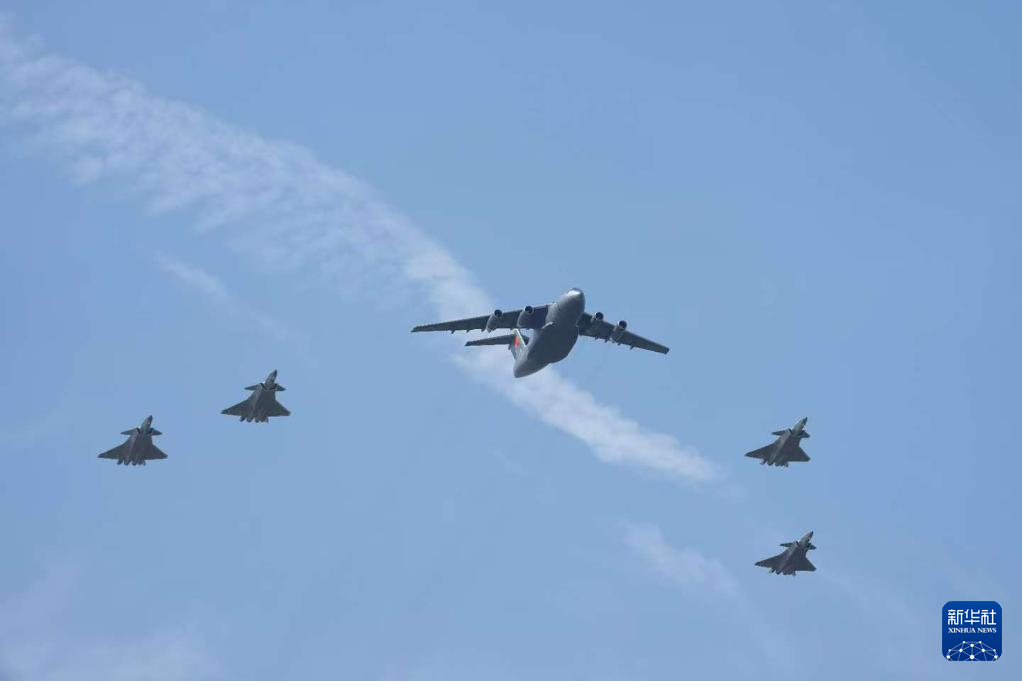 9月12日,第十二批在韩中国人民志愿军烈士遗骸回国。这是为接运烈士遗骸回国的运-20专机伴飞护航的歼-20飞机。新华社发(肖航 摄)