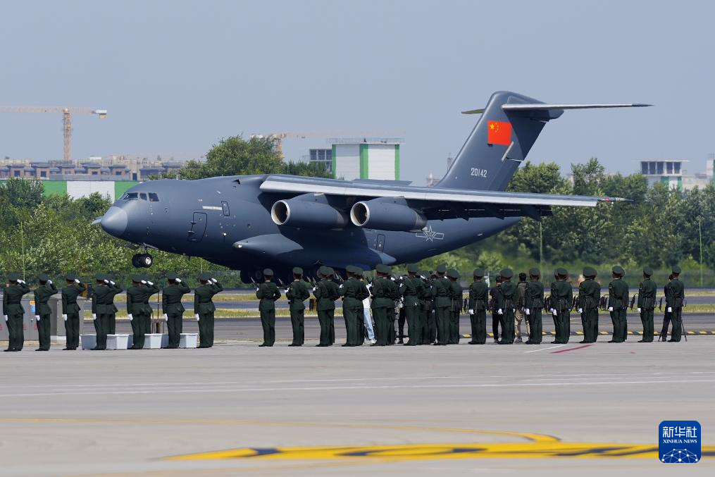 9月12日,第十二批在韩中国人民志愿军烈士遗骸回国。这是接运烈士遗骸回国的运-20飞机降落在沈阳桃仙国际机场。新华社发(杨盼 摄)