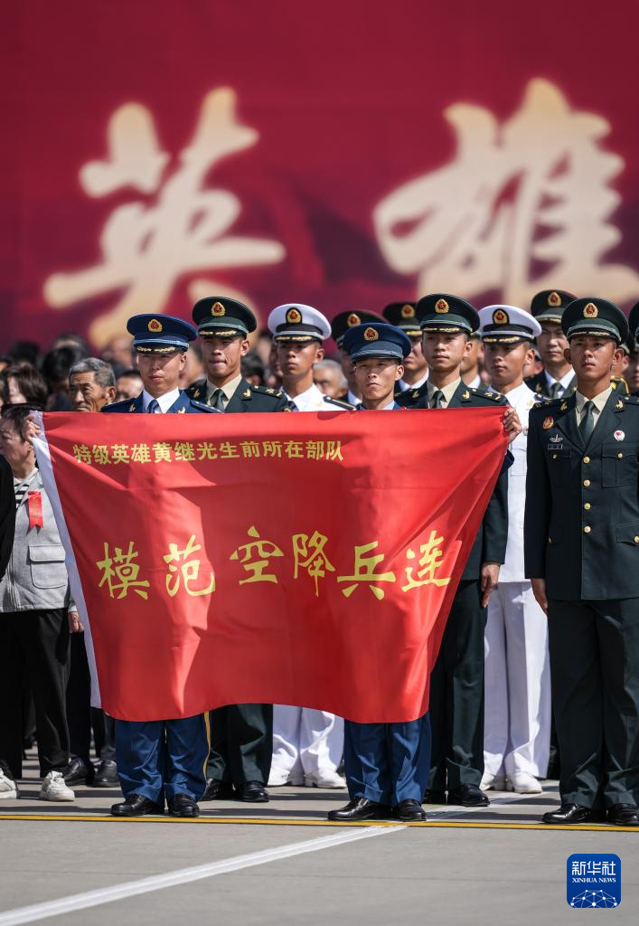 9月12日,第十二批在韩中国人民志愿军烈士遗骸回国。这是空军空降兵某部“黄继光英雄连”官兵在沈阳桃仙国际机场举行的迎回仪式上。新华社记者 潘昱龙 摄