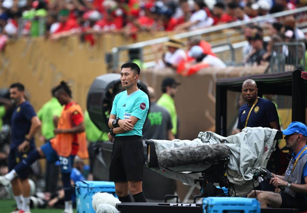 2022摩洛哥世俱杯,开罗国民对阵奥克兰城的揭幕战,马宁作为主裁判,周飞、张铖作为助理裁判,傅明作为助理视频助理裁判“集体亮相”,这是来自中国的裁判组首次执法世俱杯,创造了历史。
