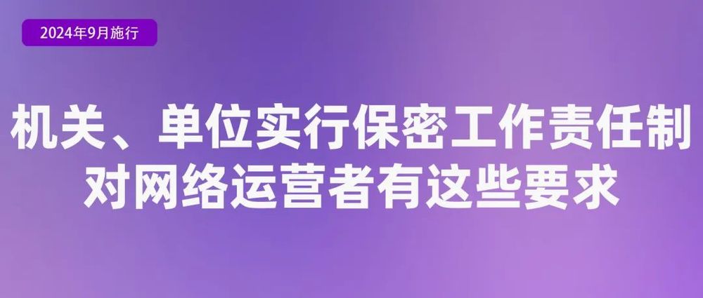 修订后的《中华人民共和国保守国家秘密法实施条例》自2024年9月1日起施行。《条例》明确,机关、单位实行保密工作责任制,承担本机关、本单位保密工作主体责任。《条例》加强网络使用保密管理,规定机关、单位工作人员不得违反有关规定使用非涉密信息系统、信息设备存储、处理、传输国家秘密,使用智能终端产品等应当符合国家保密规定。《条例》明确网络运营者对依法实施的保密违法案件调查和预警事件排查的配合义务。